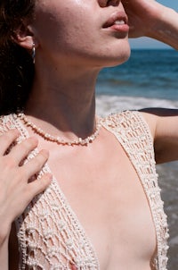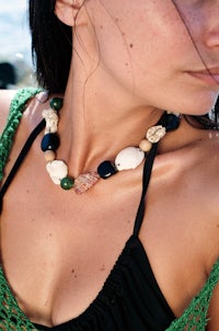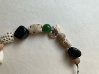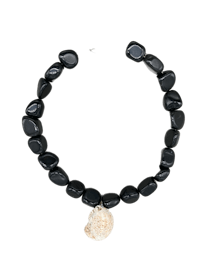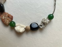 Shells, various stones on stainless steel cord, sterling silver clasp